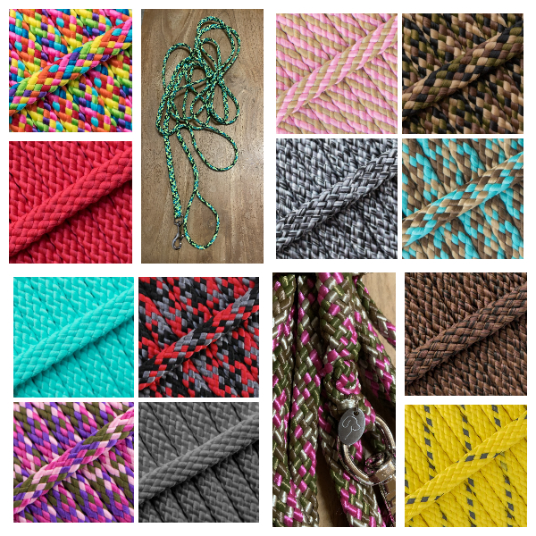 Onze unieke ‘lussenlijnen’ worden met veel zorg en aandacht met de hand gemaakt. De lijnen zijn gemaakt van hoge kwaliteit PPM touw. Dit materiaal is glanzend en soepel en ligt hierdoor erg fijn in de hand. Onze hondenlijnen zijn licht van gewicht en nemen nauwelijks water op, ook niet tijdens een flinke bui. De lijn droogt daarom ook razendsnel en wordt niet gauw vies. Het bevat geen giftige stoffen en is dus veilig voor mens en dier (OEKO-TEX® keurmerk). Al onze lijnen kunnen speciaal aan jouw wensen worden aangepast! Deze lijnen zijn geschikt voor grote honden (35+ kilo).